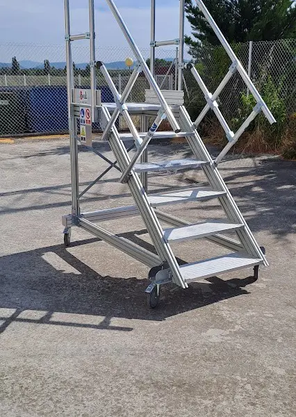El proyecto incluye varias plataformas móviles de acceso a camiones en aluminio que hemos diseñado y fabricado acorde a las necesidades, alturas y medidas del cliente.