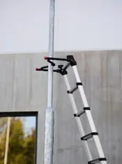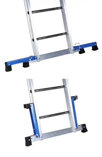 - Proponer accesorios como plataforma con barandilla plegable para colocar sobre taburetes de peldaños o sobre escaleras multiusos de peldaños; así se evitan malas prácticas en el uso como subir a los últimos peldaños en ausencia de barandillas. Separadores de pared, apoyos intermedios, peldaños portátiles compatibles con escaleras de peldaño estrecho y niveladores para colocar en las patas y trabajar en calles con pendiente.
