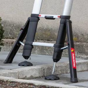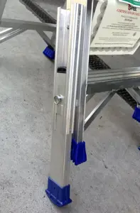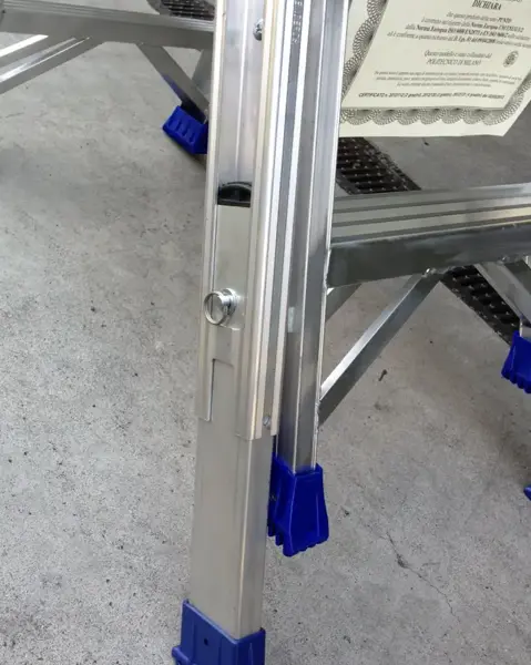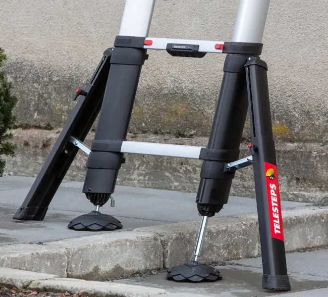 - Las escaleras de mano autoestables deben apoyar en el suelo con las 4 patas mediante unas zapatas antideslizantes que deben estar en buen estado de uso y nivel de adherencia, y sobre un terreno nivelado.