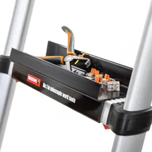 - Incorporar bandejas portaherramientas y ganchos en escaleras de mano para colgar el cubo o apoyar las herramientas que llevamos en el cinturón.