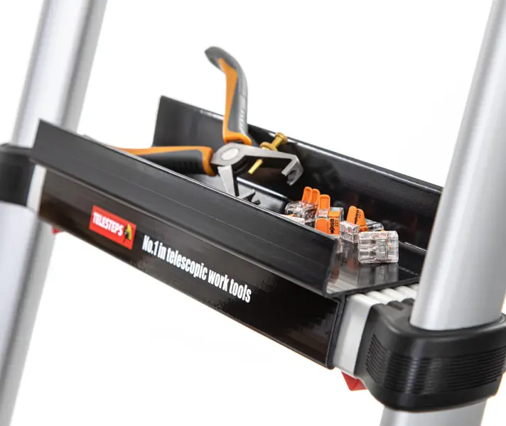 Los fabricantes de escaleras especialistas y comprometidos deben desarrollar accesorios propios compatibles con sus modelos para proporcionar seguridad, estabilidad y ergonomía al puesto de trabajo o al acceso.
