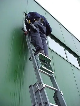 - Realizar un marcado correcto de la escalera de mano, con etiquetas que señalen el último peldaño seguro, impidiendo a las personas subir a zonas inestables.