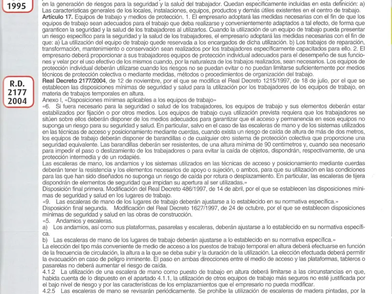 Además de las soluciones, el catálogo incorpora información detallada sobre las normativas aplicables, como la EN131, EN1004.1.2 y otras regulaciones europeas específicas sobre prevención de riesgos laborales.