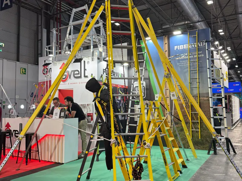 En nuestro stand mostramos escaleras profesionales, torres móviles de aluminio y nuestra gama de fibra de vidrio, especialmente indicada para trabajos eléctricos y entornos industriales exigentes. La presencia de Fibermad nos permitió ampliar aún más nuestras soluciones en fibra de vidrio, diseñadas para ofrecer máximo aislamiento, resistencia y durabilidad. Cada equipo está pensado para garantizar estabilidad, ergonomía y seguridad sin compromisos.