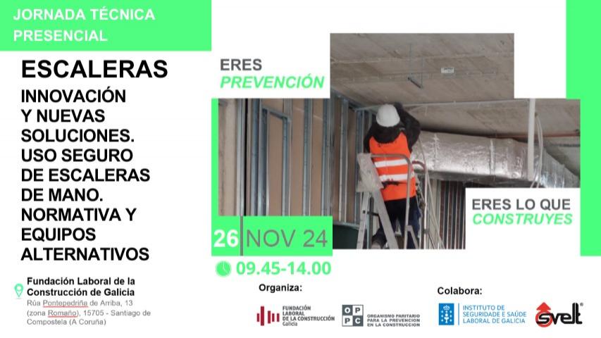 Nos complace anunciar que el próximo 26 de noviembre, Svelt será parte de la jornada técnica presencial organizada por la Fundación Laboral de la Construcción de Galicia. Este evento, que se centrará en la innovación y el uso seguro de escaleras de mano, se llevará a cabo en el Centro de Formación de Santiago de Compostela Rúa Pontepedriña de Arriba, 13, zona Romaño de 09:45 a 14:00.