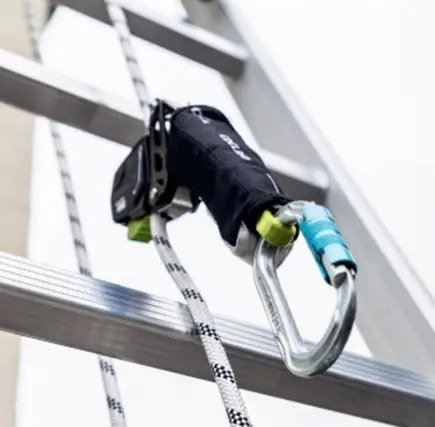 Lo segundo es equipar la escalera certificada EN131 y autorizada por el fabricante con una línea de vida textil con sistema anticaídas.