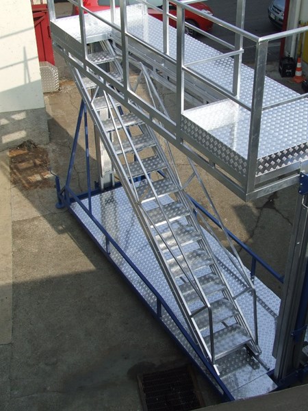 Dispone de una comoda escalera de acceso que se adapta a las diferentes alturas de la plataforma.
