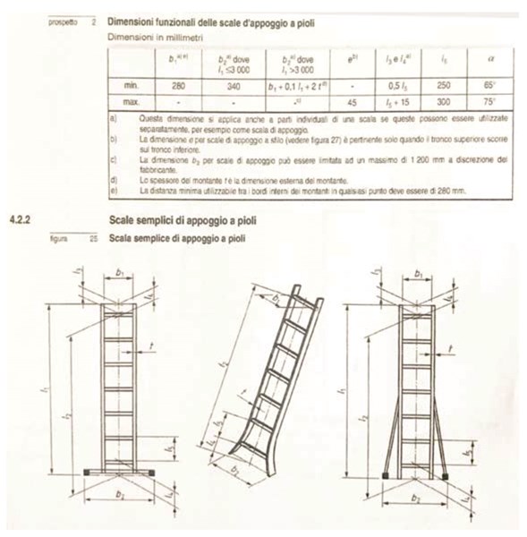 1) La modificación más sobresaliente concierne sobre todo a las escaleras de mano de apoyo de más de 3 metros, que deben estar equipadas con una base alargada o con un estabilizador. La anchura de la base debe ser proporcional a la altura de la escalera de mano (Ver cuadro) Cada distribuidor decidirá el mejor método para obtener dicha anchura. Svelt ha decidido usar el estabilizador. También modificaremos todos los perfiles en escaleras de apoyo de más de tres metros con agujeros en la base para permitir al cliente final instalar el estabilizador en la escalera sin ningún problema.