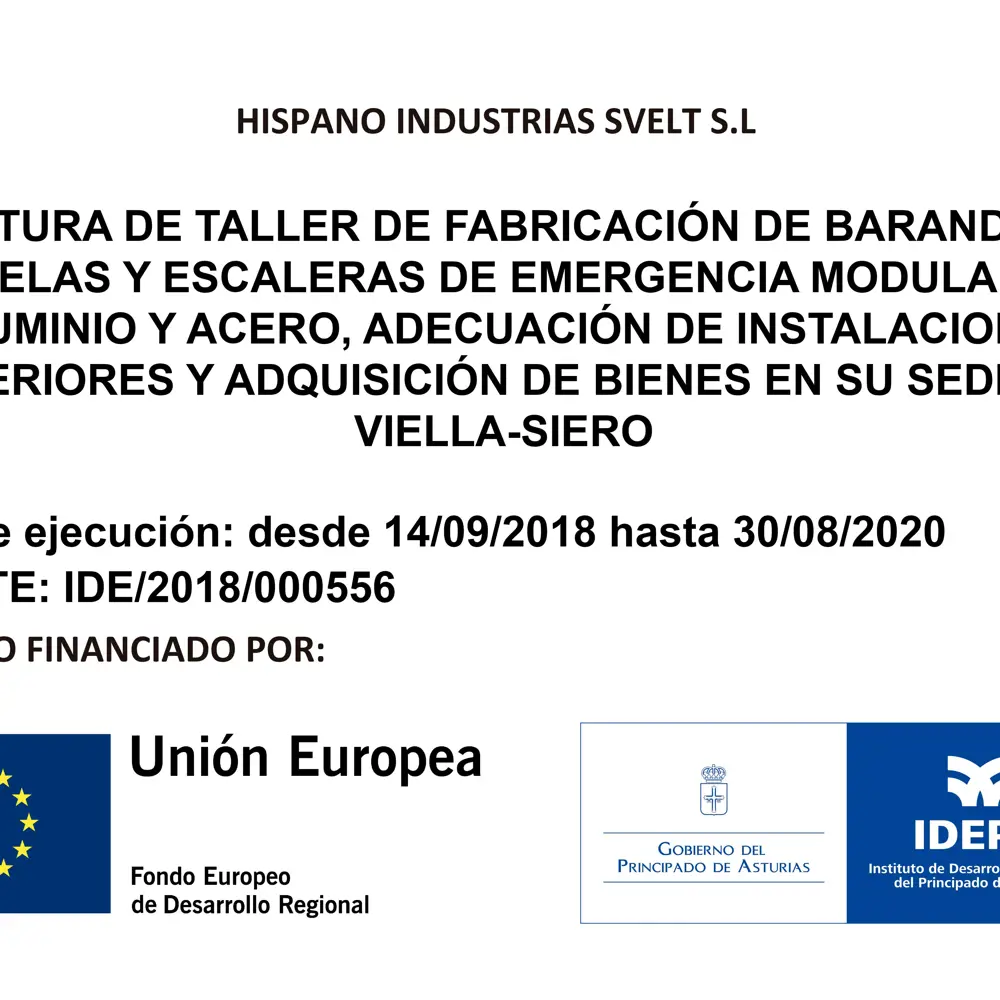 Apertura de taller de fabricación de barandillas pasarelas y escaleras de emergencia modulares de aluminio y acero, adecuación de instalaciones interiores y adquisición de bienes en su sede de Viella-Siero