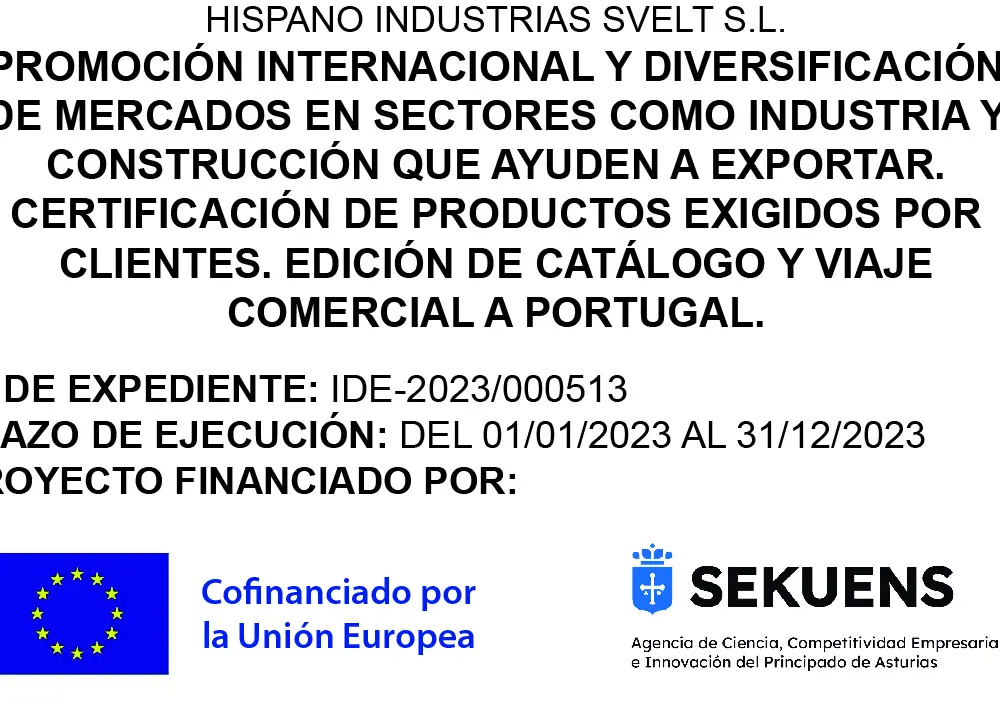Título: “Promoción internacional y diversificación de mercados en sectores como industria y construcción que ayuden a exportar. Certificación de productos exigidos por clientes. Edición de catálogo y viaje comercial a Portugal”