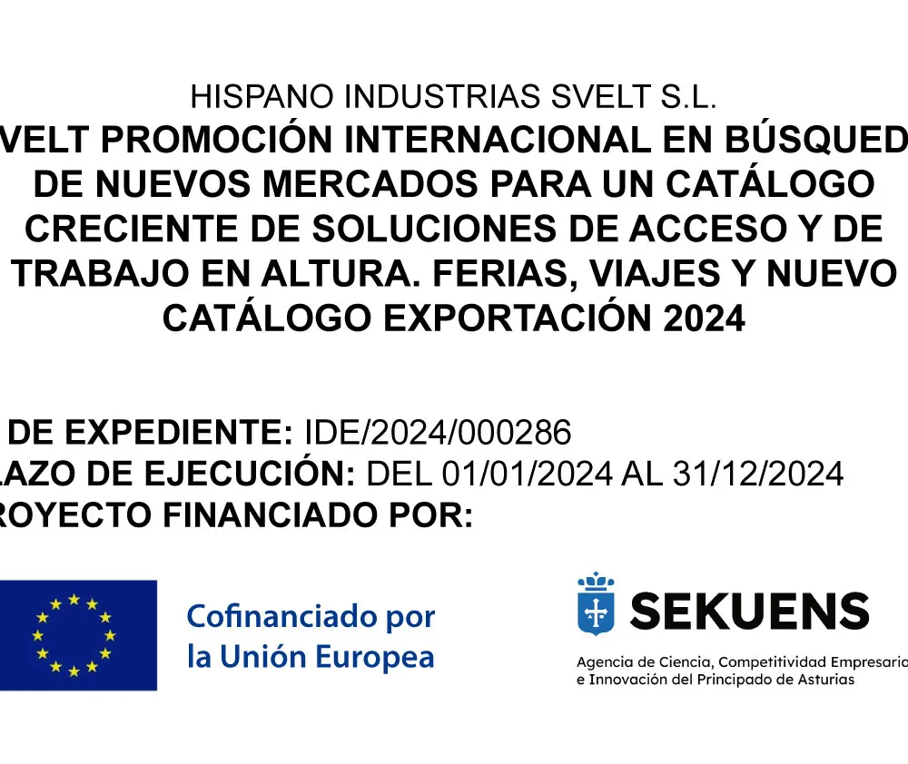 Título: “Svelt promoción internacional en búsqueda de nuevos mercados para un catálogo creciente de soluciones de acceso y de trabajo en altura. Ferias, Viajes y nuevo catálogo exportación 2024”.