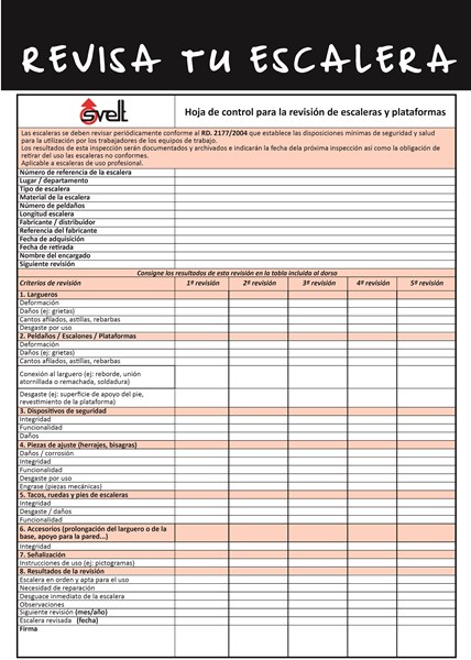 REVISA TU ESCALERA SVELT - Hoja de revisión periódica de escaleras.