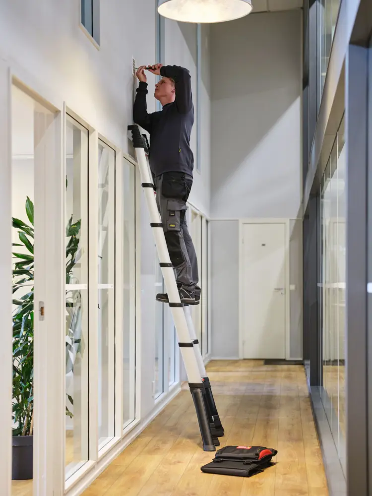 Cuando se utilizan escaleras telescópicas, la facilidad de transporte y el acceso rápido a las herramientas son características fundamentales.