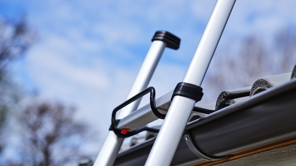 Accesorio de sujeción de escaleras a canalones que asegura el acceso a cubiertas