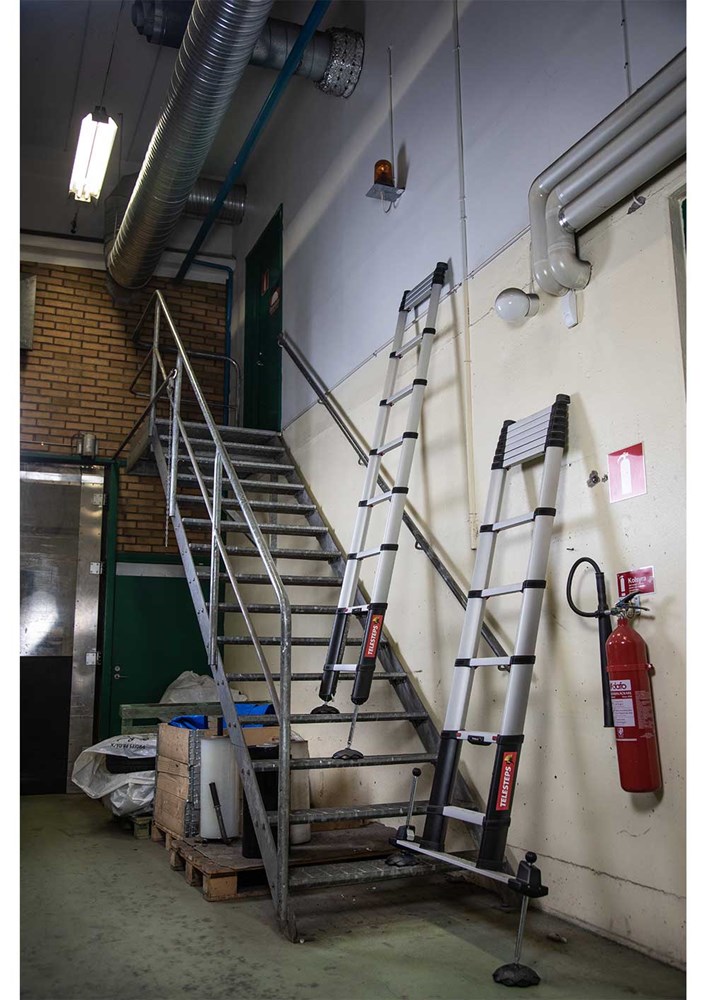 Pies de seguridad para escaleras Telesteps regulables en altura y con base circular pivotante