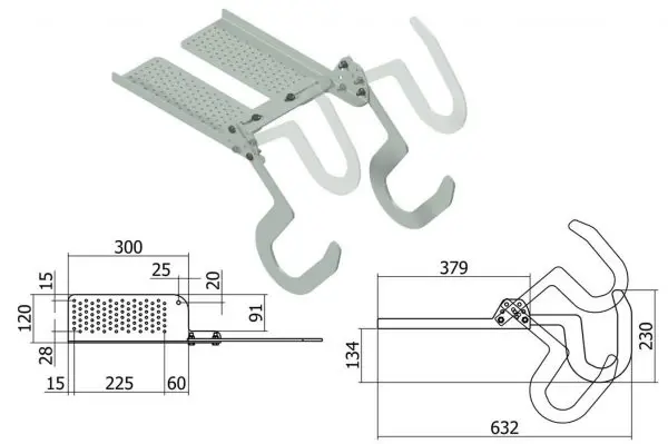 2 ganchos regulables para escaleras en acero galvanizado