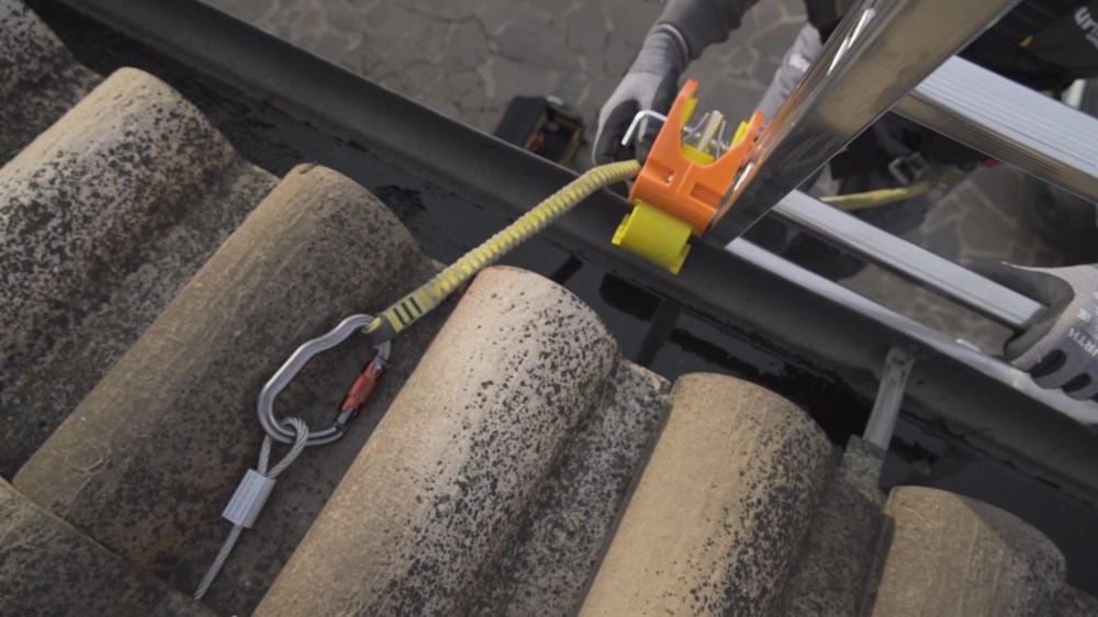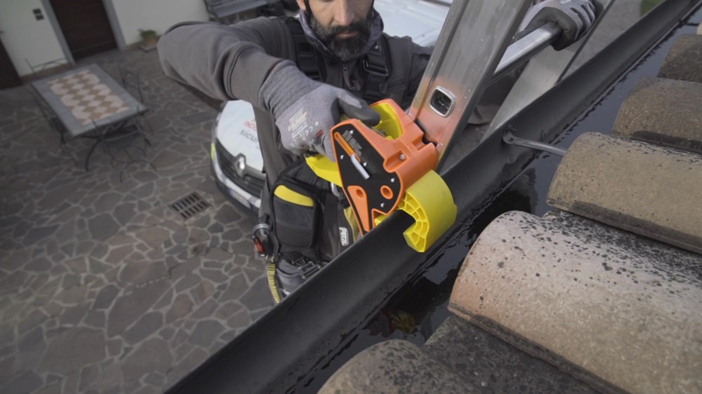 Lock Jaw Ladder consiste en un gancho portátil que se puede transportar cómodamente en el arnés o el cinto gracias a un mosquetón incluido de serie. Una vez a la altura del canalón, el operario puede colocar y ajustar en gancho con una sola mano, asegurando de esta manera la escalera al canalón y elimimnando en un solo gesto las posibilidades de resbalo o de caída.
