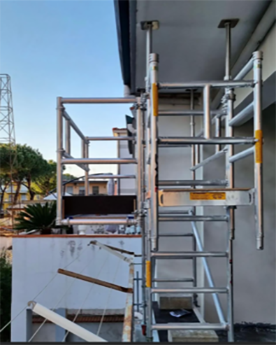 Tempo balcón es un andamio europeo para balcones y terrazas, de montaje rápido y sencillo, ideal para el mantenimiento de balcones.