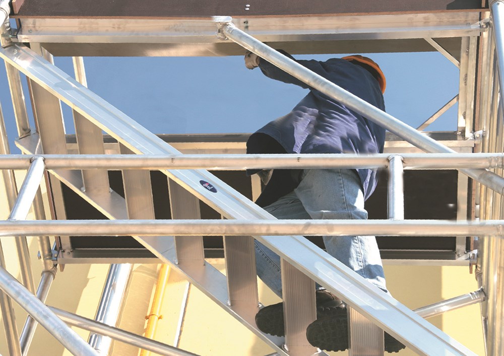 El andamio Tempo Confort Safe, dispone de cómodas escaleras interiores con un ángulo de inclinación de 45º y amplios peldaños de 10 cm de profundidad, cada escalera tiene 2 pasamanos que permiten al operario subir y bajar de forma muy segura.