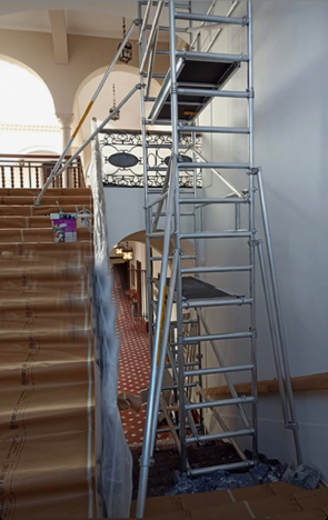 Andamio móvil profesional fabricado en tubo de aluminio de Ø 50 mm. Montaje sin herramientas, transporte fácil gracias a su reducido peso y tamaño.