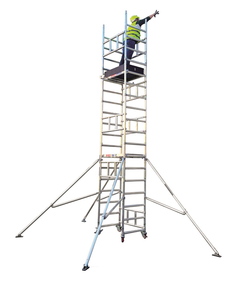 El andamio Sveltower ofrece la flexibilidad de trabajar a diferentes alturas, lo que lo convierte en la elección ideal para instalaciones en interiores, trabajos de pintura y obras de mantenimiento, con una altura de trabajo hasta 6,00 metros.