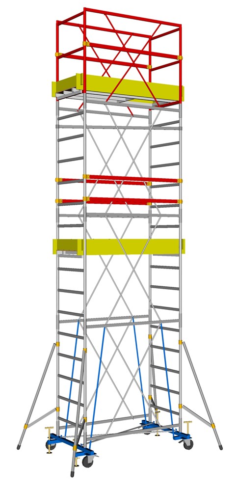 La torre móvil de acero Euromedio está fabricada en acero zincado electrolíticamente FE360 contra la corrosión. Es un equipo de trabajo en altura con protección colectiva ideal para construcción como torre de encofrado. Ofrece seguridad en el trabajo temporal en altura y facilidad de montaje sin herramientas.