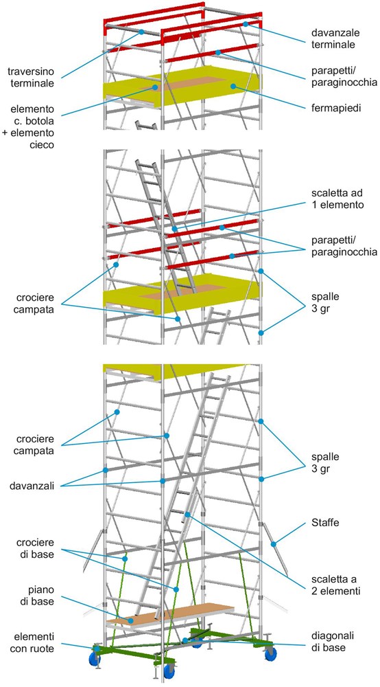 Ofrece un espacio de trabajo muy seguro gracias a las crucetas que forman una estructura estable perfecta incluso a grandes alturas,