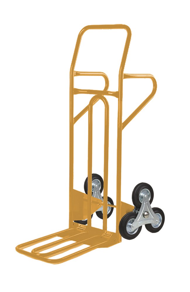 Carro de acero para subir escaleras - plataforma plegable sobredimensionada. Llantas fabricadas en Italia con buje de hierro y placa de acero reforzada moldeada para escalones salientes