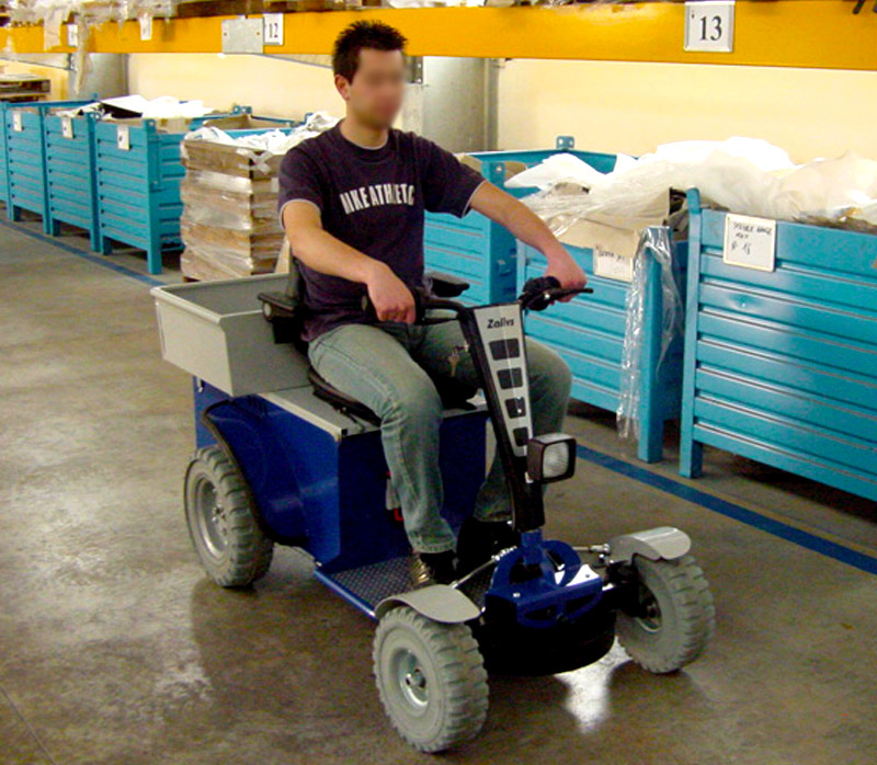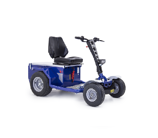 Recorre distancias largas y transporta personas y mercancías, se puede equipar con diferentes cestos y plataformas en su parte trasera.