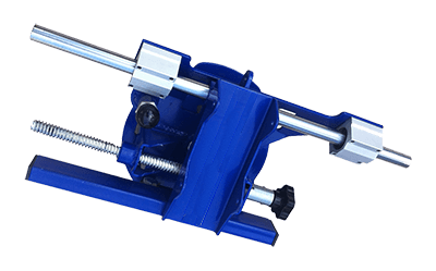 El brazo azul del kit puede, posicionarse para facilitar el levantamiento desde el suelo y mantener el vidrio suspendido para llevar a cabo el montaje del kit.