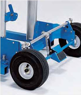 - Ruedas traseras pivotantes de Ø 127 mm, con freno lateral y ruedas delanteras fijas de Ø100 mm (modelo Lift C)