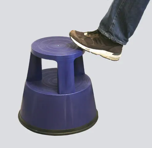 Taburete fabricado en polipropileno es ideal para uso profesional y doméstico. El taburete puede ser movido con el pie y posicionado sin necesidad de levantarlo. Cuando se levanta, las ruedas desaparecen instantáneamente y se bloquea mediante un anillo de goma antideslizante posicionado en la base.