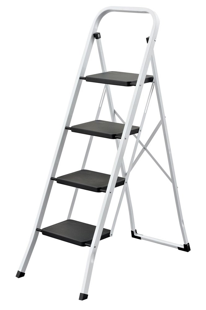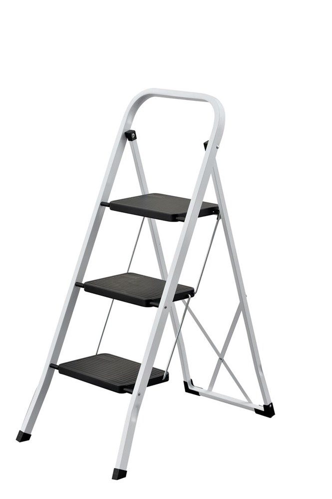 Taburete de una subida, con guardacuerpo para uso doméstico.