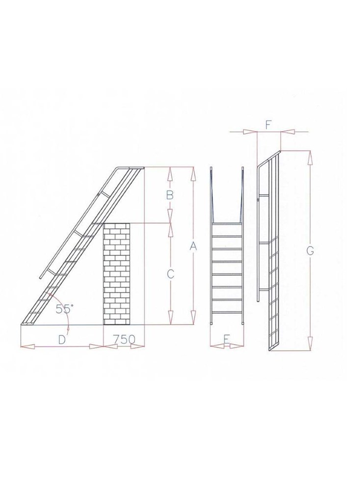 La escalera se instala de forma fija mediante anclaje a pared o estructura portante, garantizando estabilidad y seguridad entre niveles.