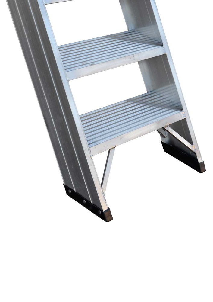 Su construcción en aluminio resistente ofrece ligereza y durabilidad, lo que la hace adecuada para entornos industriales, comerciales o técnicos donde se requiere un acceso fiable, estable y cómodo entre alturas.