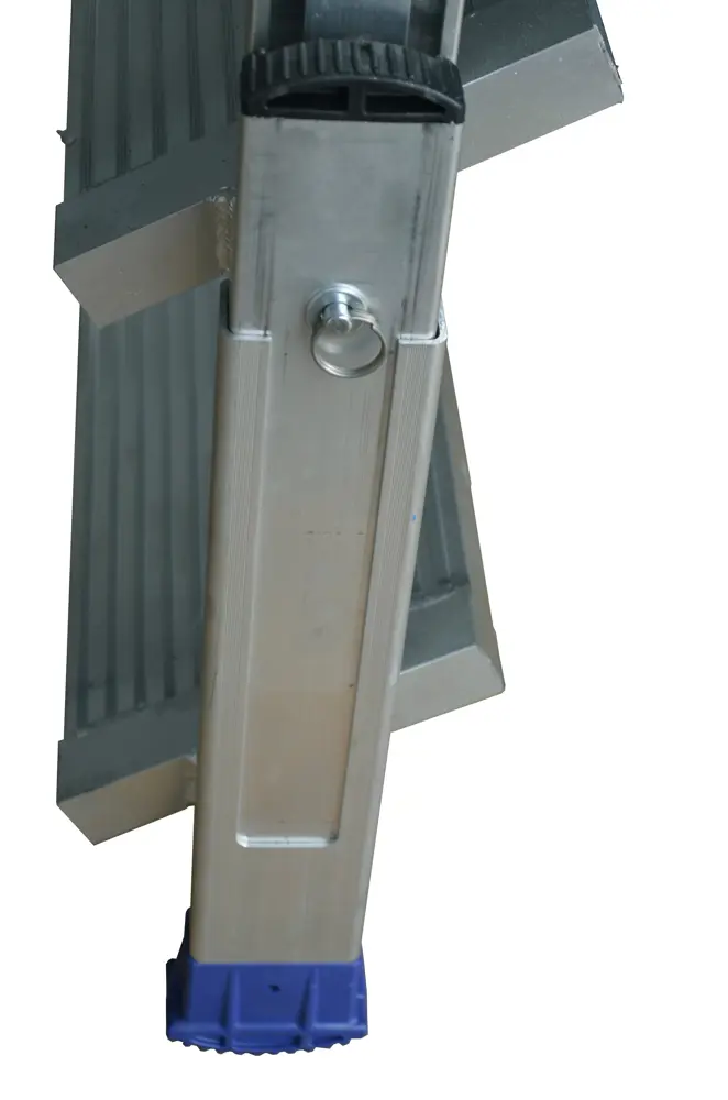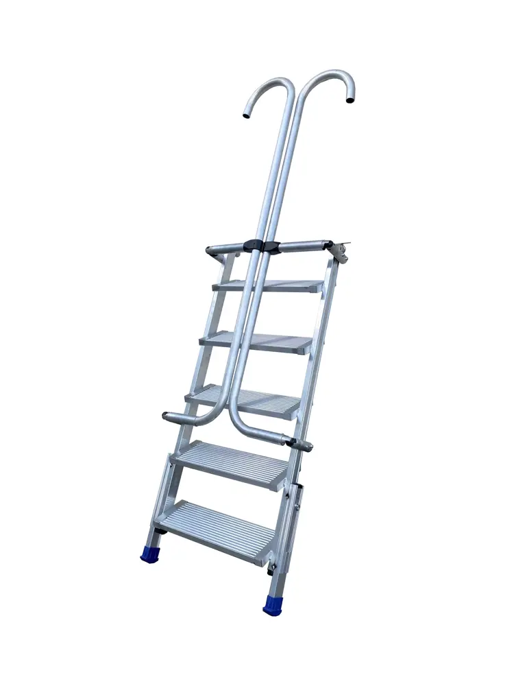Escalera de uso profesional, fabricada en aluminio. Diseñada para el sector logístico y de transporte, es una escalera segura y cómoda de utilizar. Además, cuenta con tacos antideslizantes y se puede equipar con pies regulables para superar desniveles o peldaños.