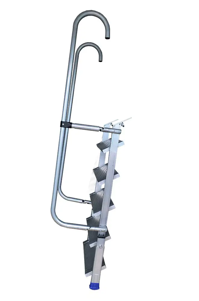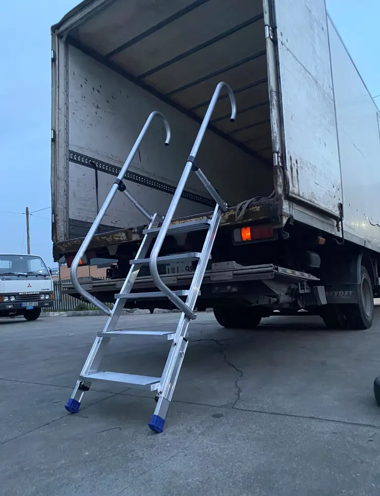 Escalera de acceso especializada para el sector logístico y de transporte. La escalera cuenta con dos potentes imanes en la parte superior que se fijan a la caja del camión, para evitar posibles deslizamientos o vuelcos durante su uso.