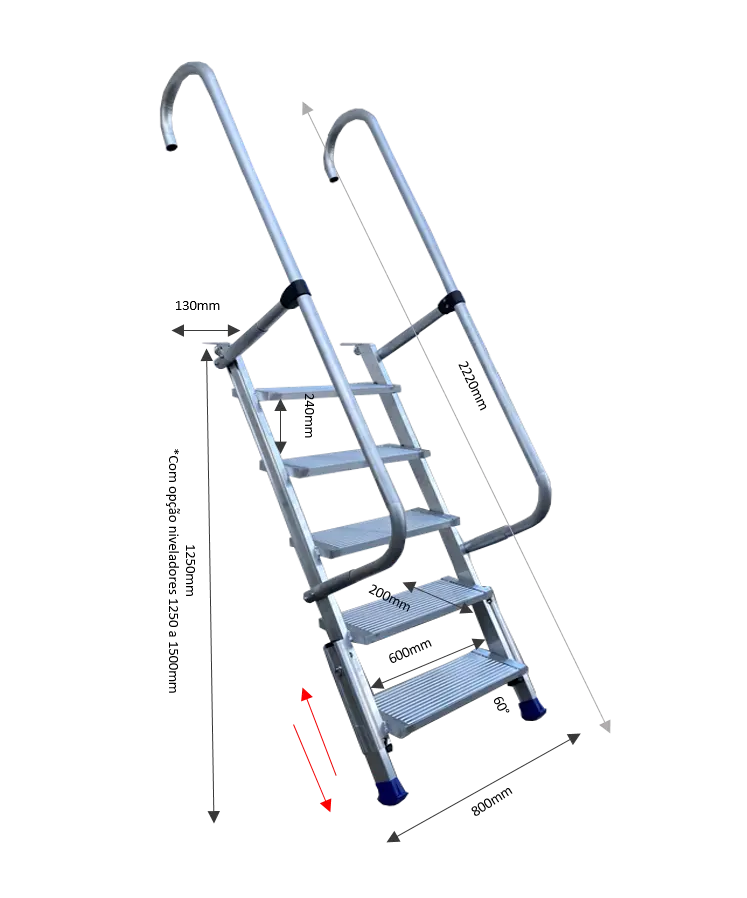 - Modelo de 5 peldaños: altura 1250 mm y peso 23,5 kg.