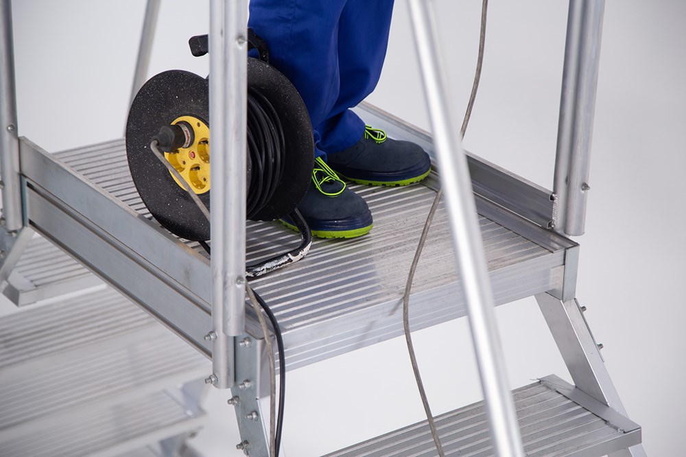 - Plataforma superior que mejora el confort de trabajo en altura.