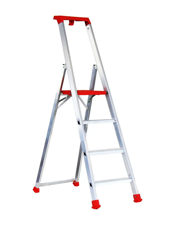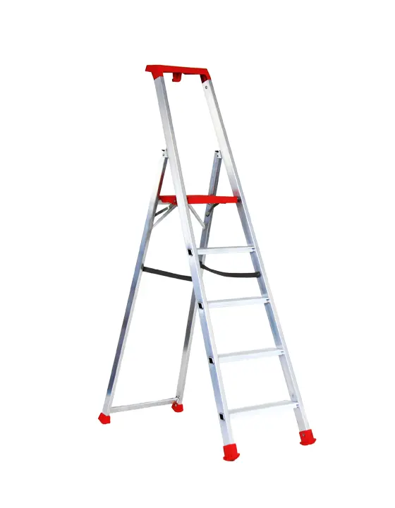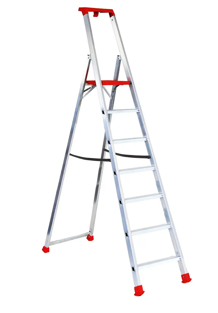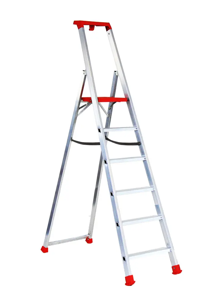 Escalera de tijera con plataforma con bandeja portaherramientas