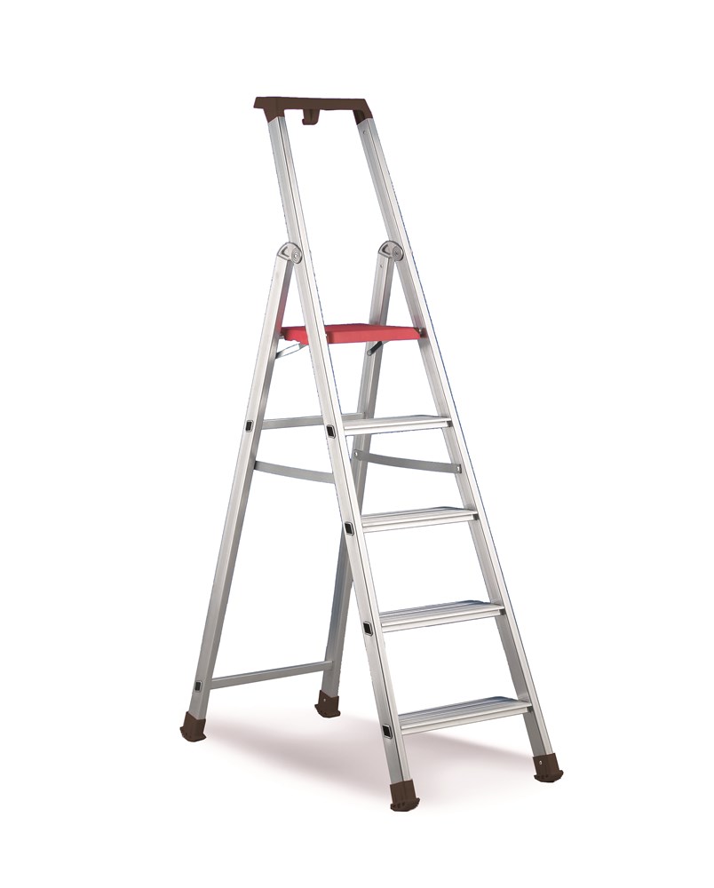 Escalera de tijera con plataforma peldaño ancho 12 cm con bandeja portaherramientas