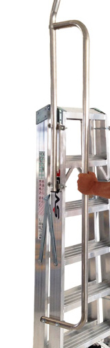 La norma europea UNE EN 131 prohíbe estar los 2 últimos peldaños en ausencia de guardacuerpo.