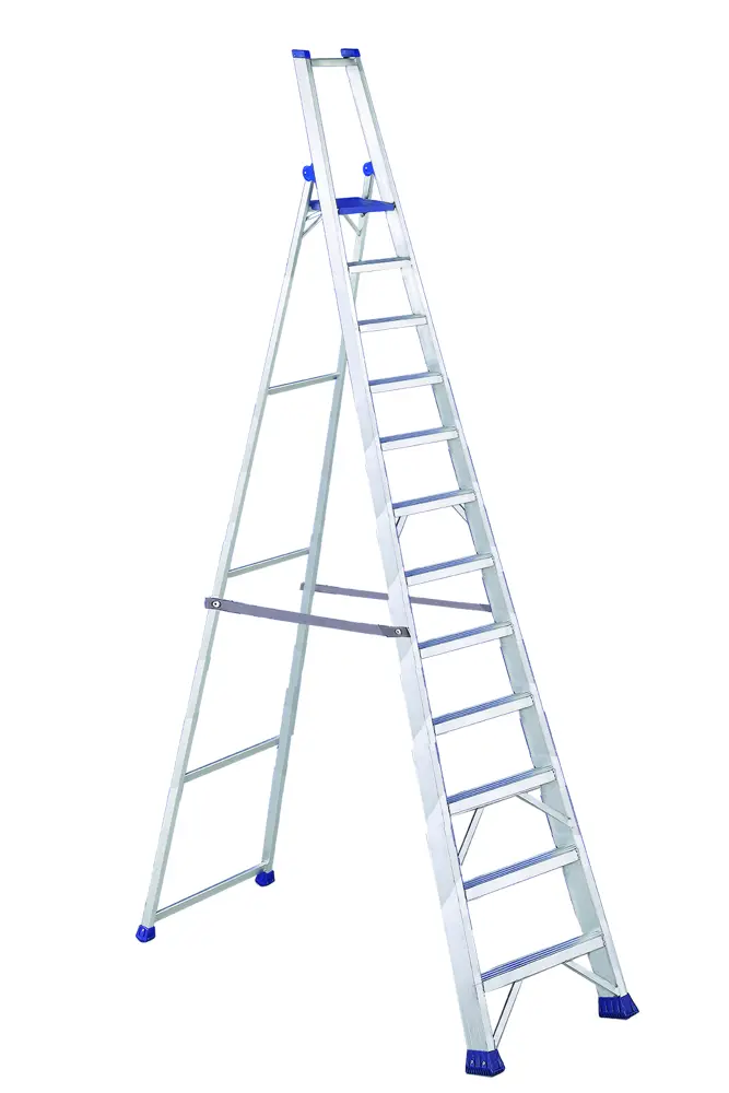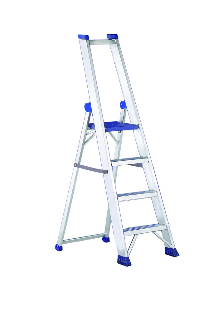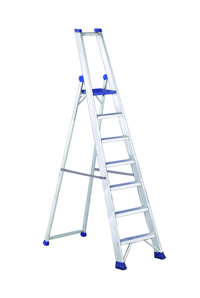 Escalera profesional de tijera de aluminio con plataforma y bandeja portaherramientas