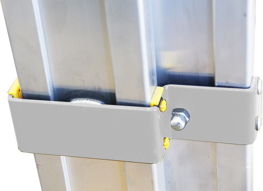 Euro2F es una escalera de aluminio extruido nervada con sistema mecánico de cuerda para uso profesional construida con un avanzado sistema automático de peldaño embutido que fija permanentemente los peldaños a los montantes con efecto “sándwich”.