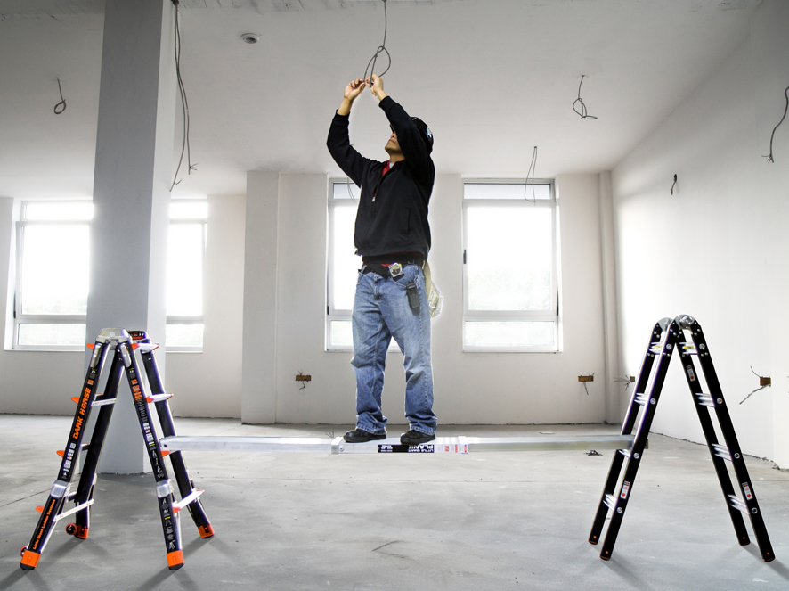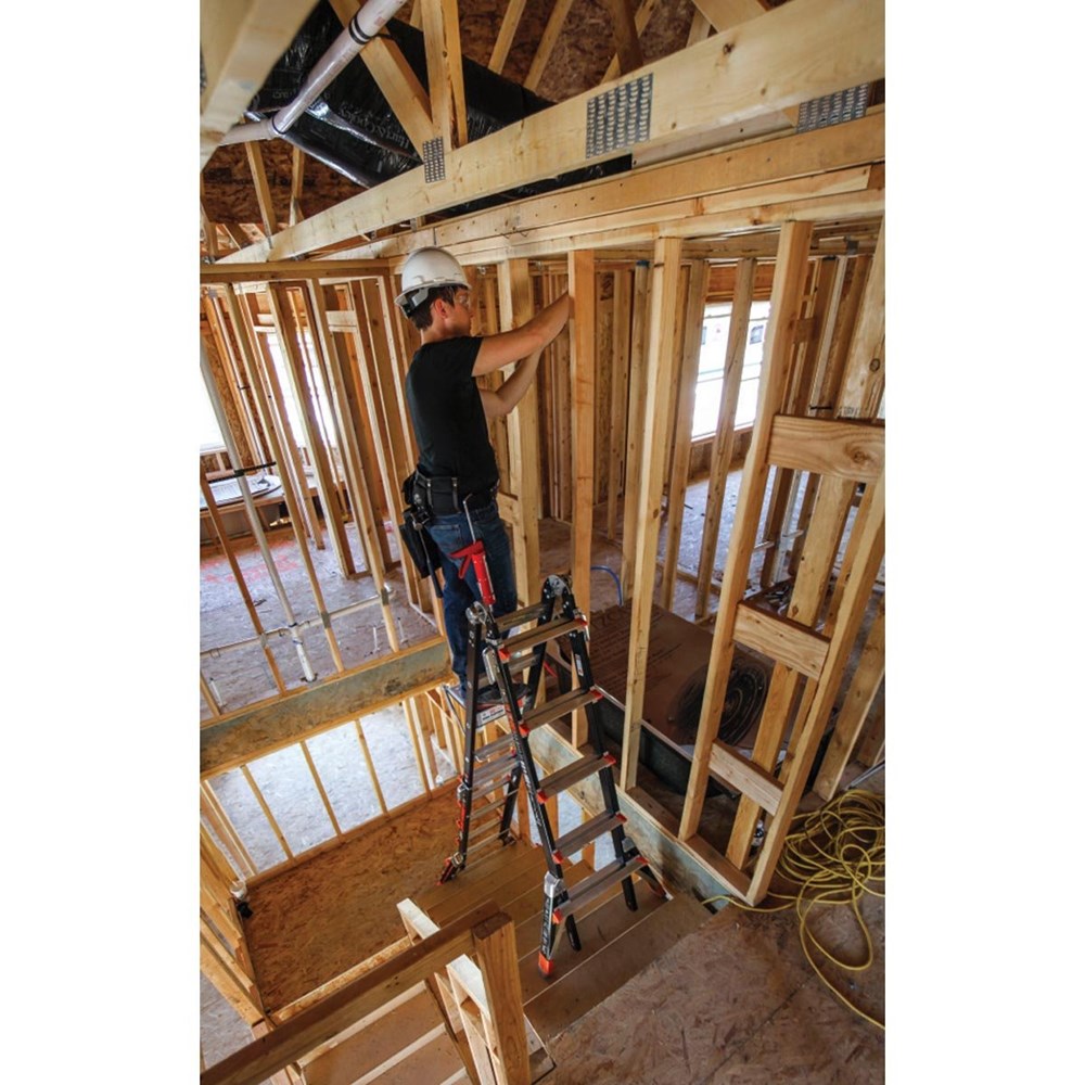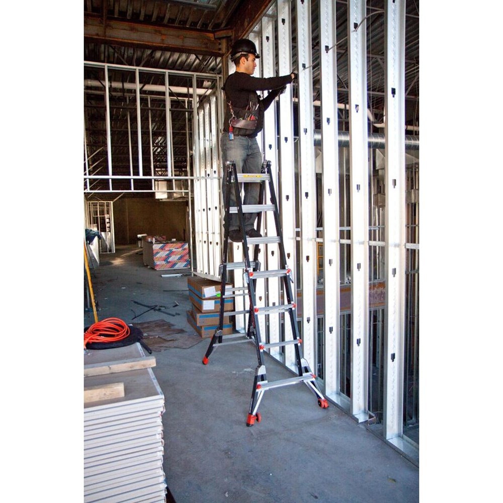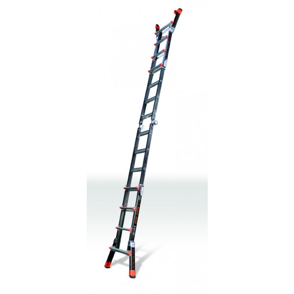 Escalera multiposiciones fabricada en fibra de vidrio muy ligero y robusto. Es telescópica por lo que alcanza varias alturas sustituyendo a varios tamaños de escaleras de tijera y extensibles.