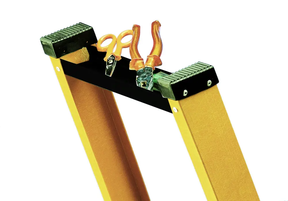 Escalera profesional de fibra aislante, que permite proteger al operario en trabajos eléctricos (bajo voltaje), dispone de peldaños reforzados, estriados y antideslizantes.