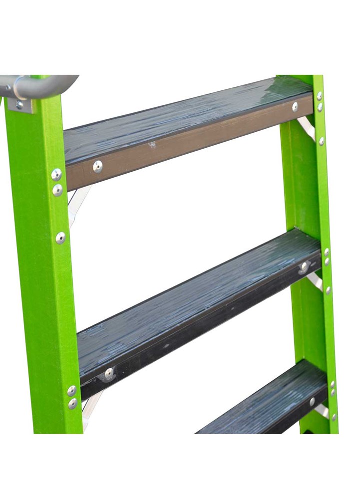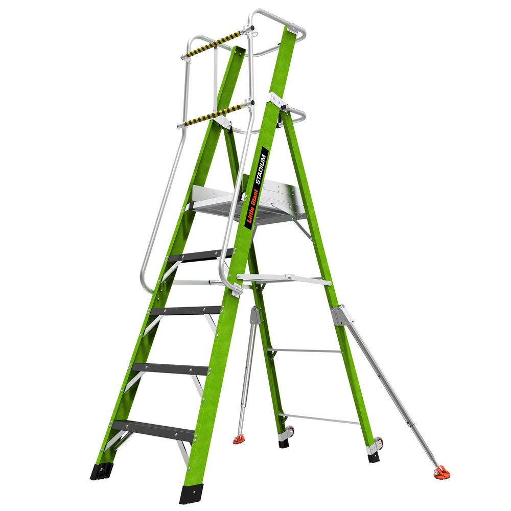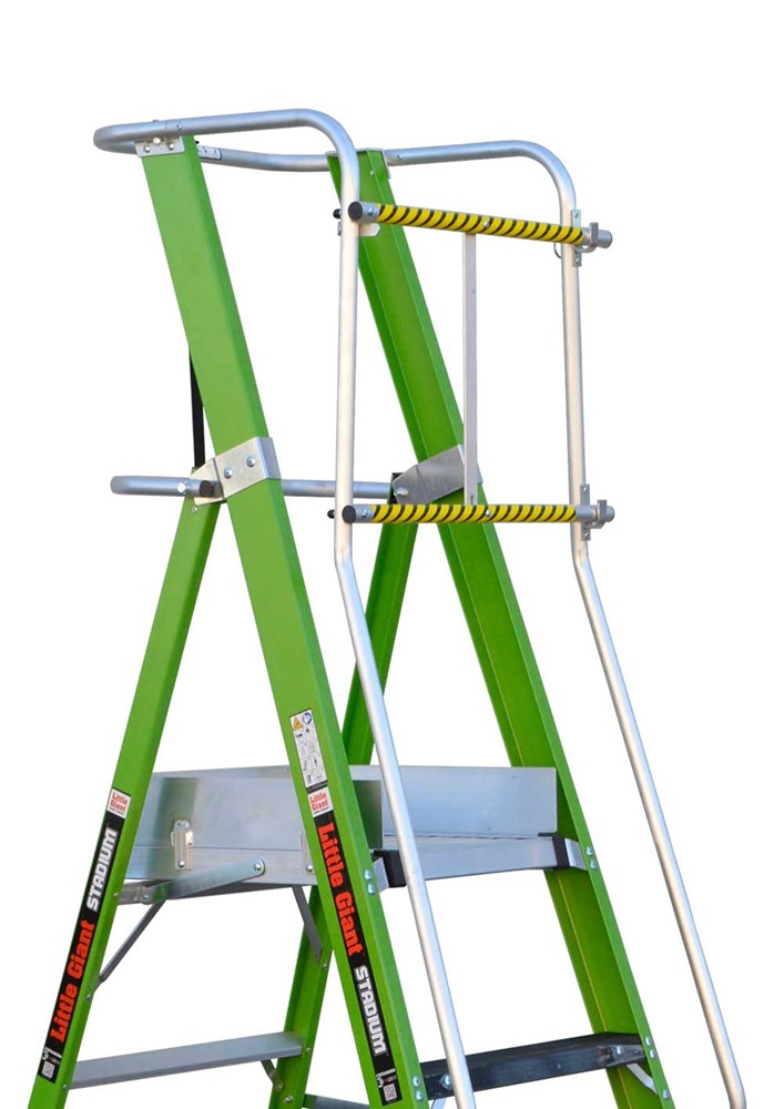 Stadium es una escalera de fibra de vidrio, aislante para trabajar con electricidad. Gracias a su amplia plataforma permite trabajar largos periodos de tiempo en altura, además el rodapié en su plataforma le confiere máxima seguridad. Su guardacuerpo está equipado con unas barras de seguridad que protegen al operario 360º , escalera segura para trabajos que exigen permanecer en altura.