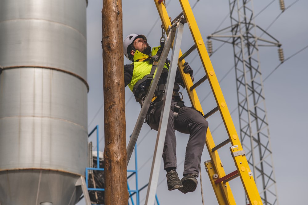 Escalera de seguridad profesional aislante completa de fibra de vidrio con punto de anclaje