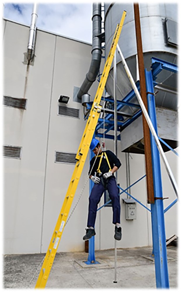 EN795-B y dispositivo anticaídas. Está considerada un puesto de trabajo seguro por encima de 2 m altura. Antimagnética, resistente a la humedad, los ácidos, la corrosión y con un velo protector antirayos solares.