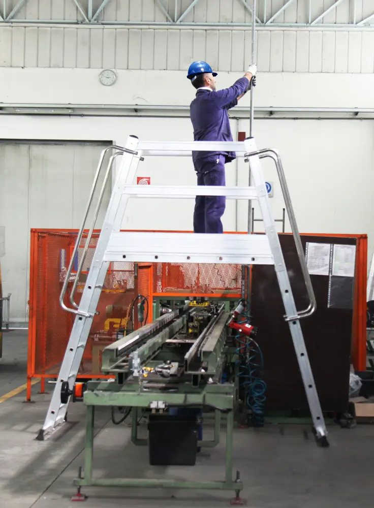 Se posiciona sobre o alrededor del obstáculo horizontal que se desea salvar, permitiendo al operario subir por los peldaños sin interferencias.